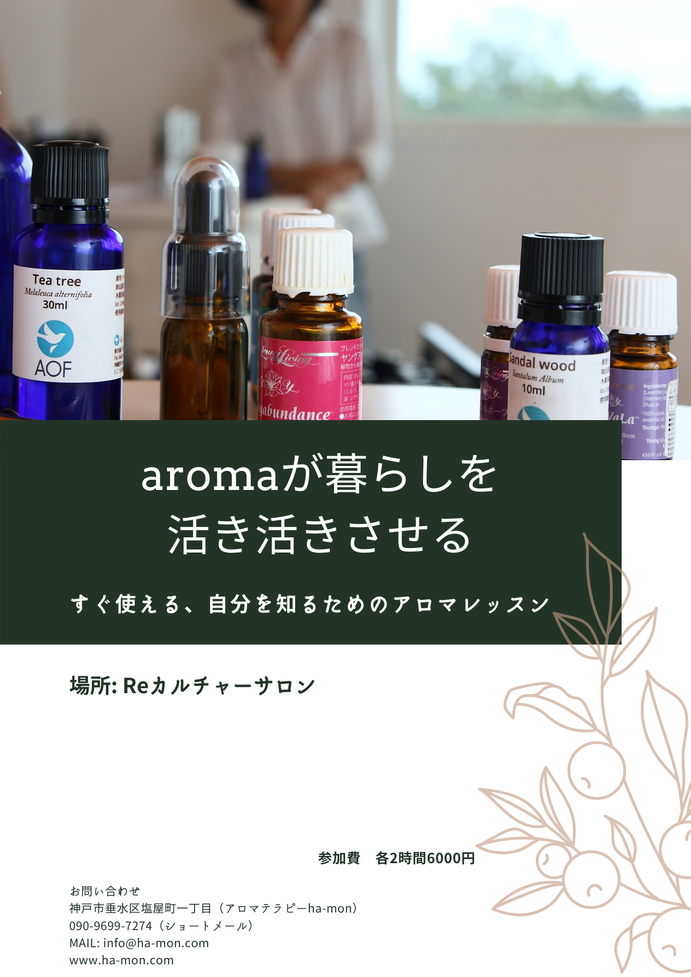 「自分を知るためのアロマ講座」完全予約制 月1回開催 (開催日はお問い合わせください) |